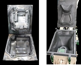 自動車ウレタンシートの発泡用金型 当社で製作した金型を使ってシートメーカー様が発泡、組付で自動車シートが完成します。シート以外にもヘッドレストはもちろん、枕など他のウレタン発泡型にも対応。